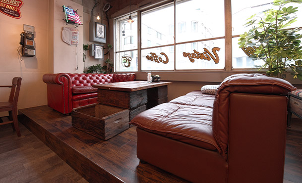 愛知県岡崎市「東岡崎駅」から少し歩いた先にある「TERAKADO COFFEE 岡崎ニューヨーク店(テラカドコーヒー オカザキニューヨーク)」。飲み会・女子会といった少人数のお集まりはもちろんのこと、ご宴会・パーティー・結婚式の二次会など大勢でのご利用も歓迎しています。ニューヨークの雰囲気を醸し出すお洒落な店内は、レイアウトの変更も自由自在。ご要望に合わせてお席をご用意しますので、気軽にお申し付けください。
